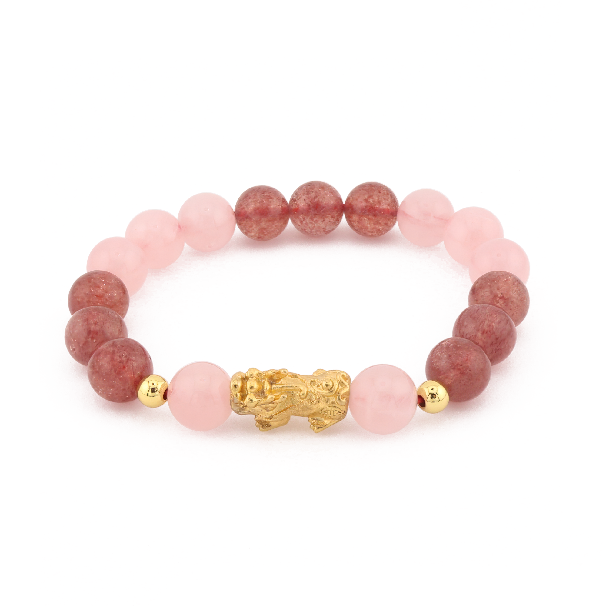 Blissful Love Charm – Pixiu Strawberry & Rose Quartz Bracelet