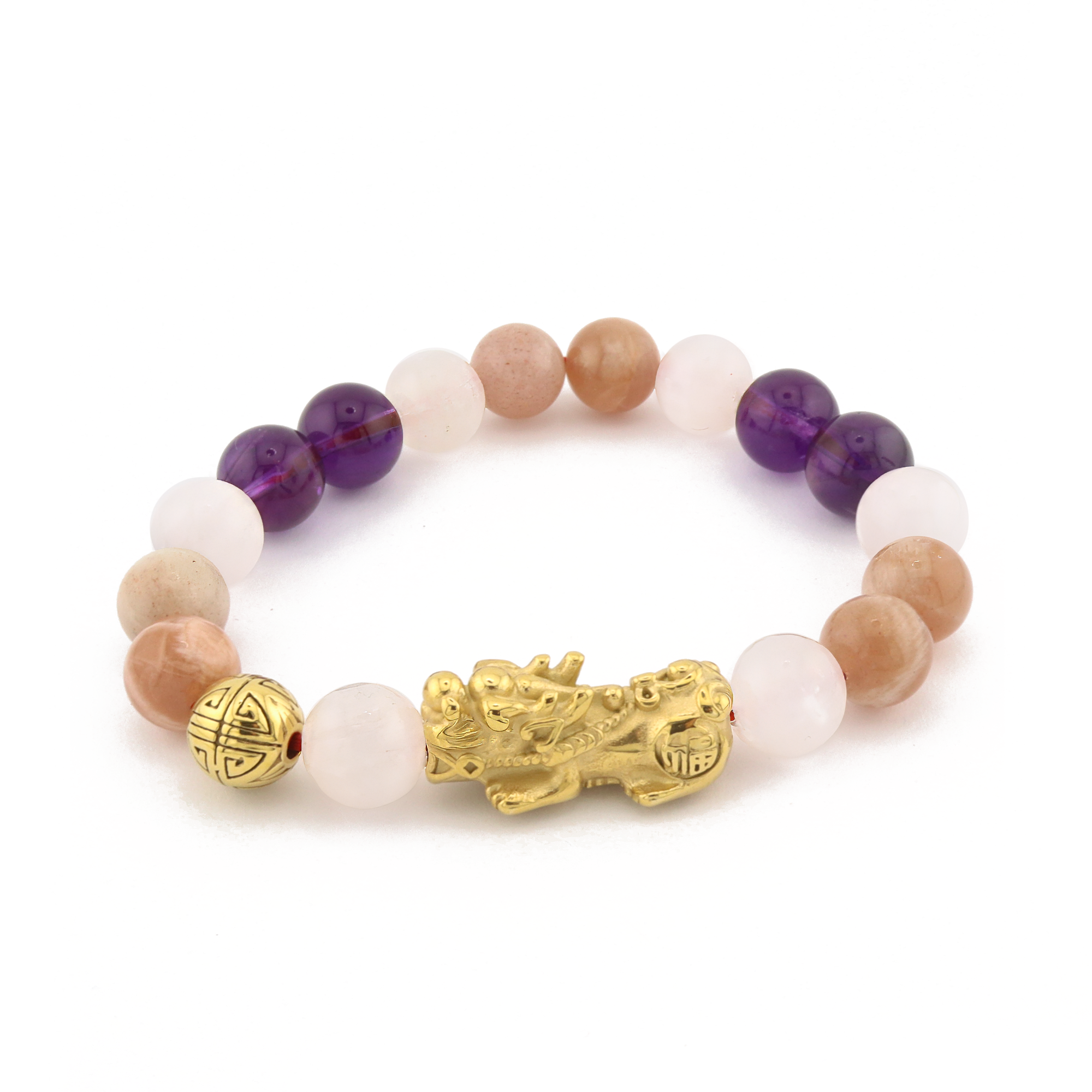 Ethereal Love Charm – Pixiu Amethyst Moonstone Selenite Bracelet