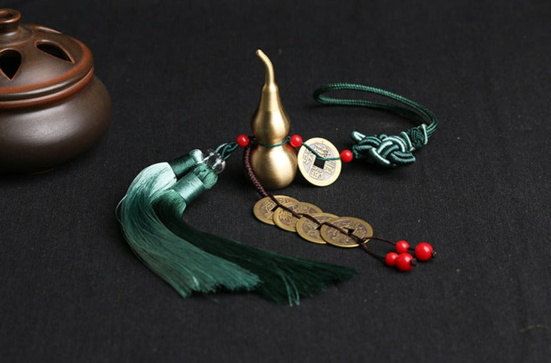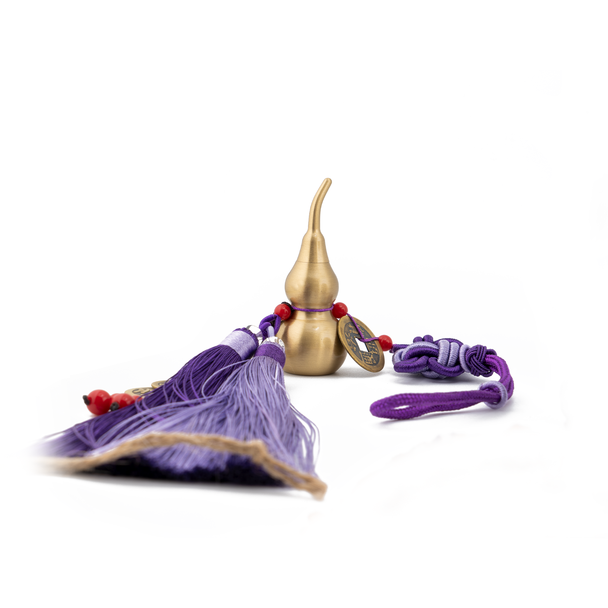 Embrace tranquility and safeguard your space with the Hu Lu Calabash Charm. This revered talisman, steeped in Taoist tradition, is renowned for its ability to absorb negative chi and protect against harmful energies. The Hu Lu, originally a dried fruit used for storing medicine, has been elegantly crafted into brass to enhance its energy-cleansing properties.