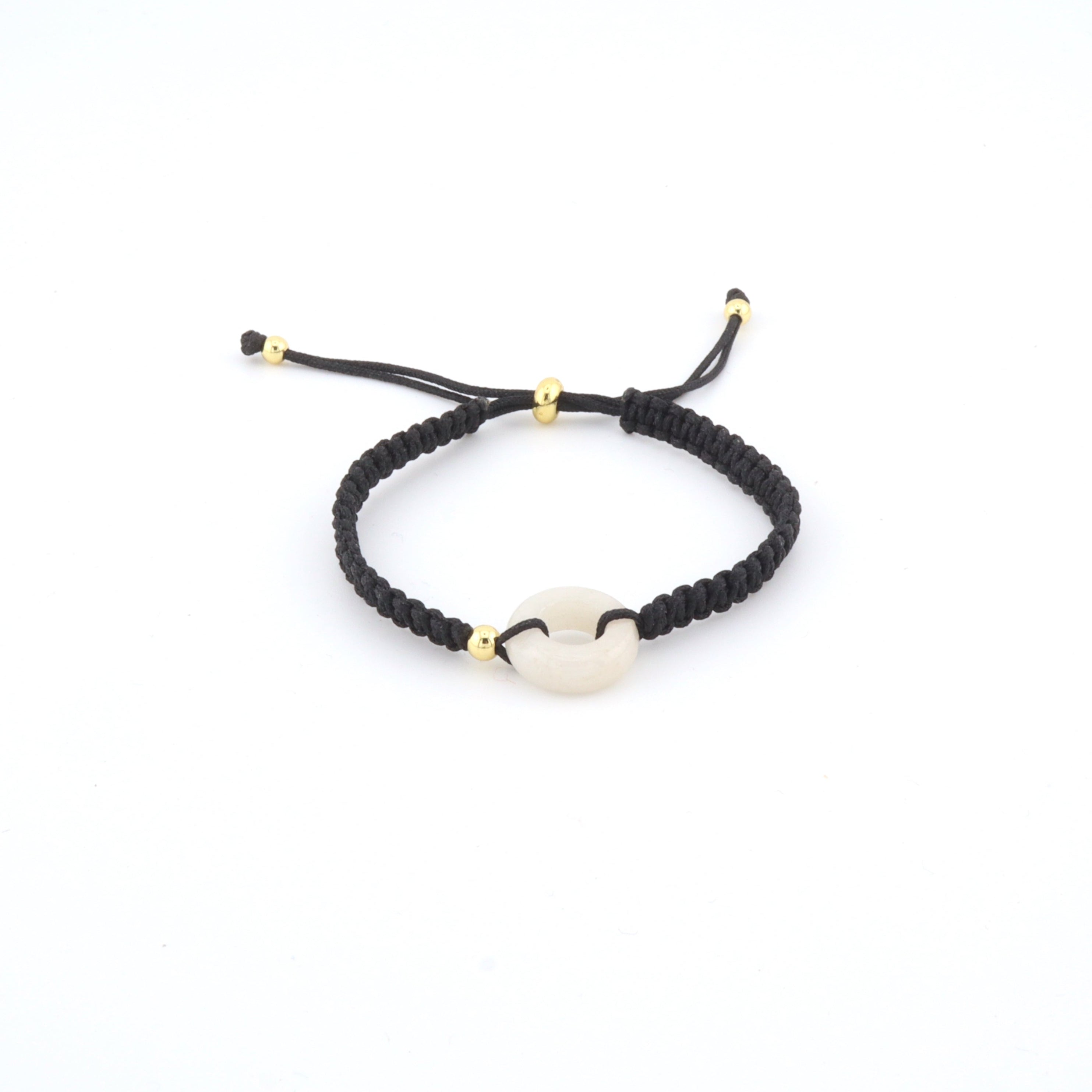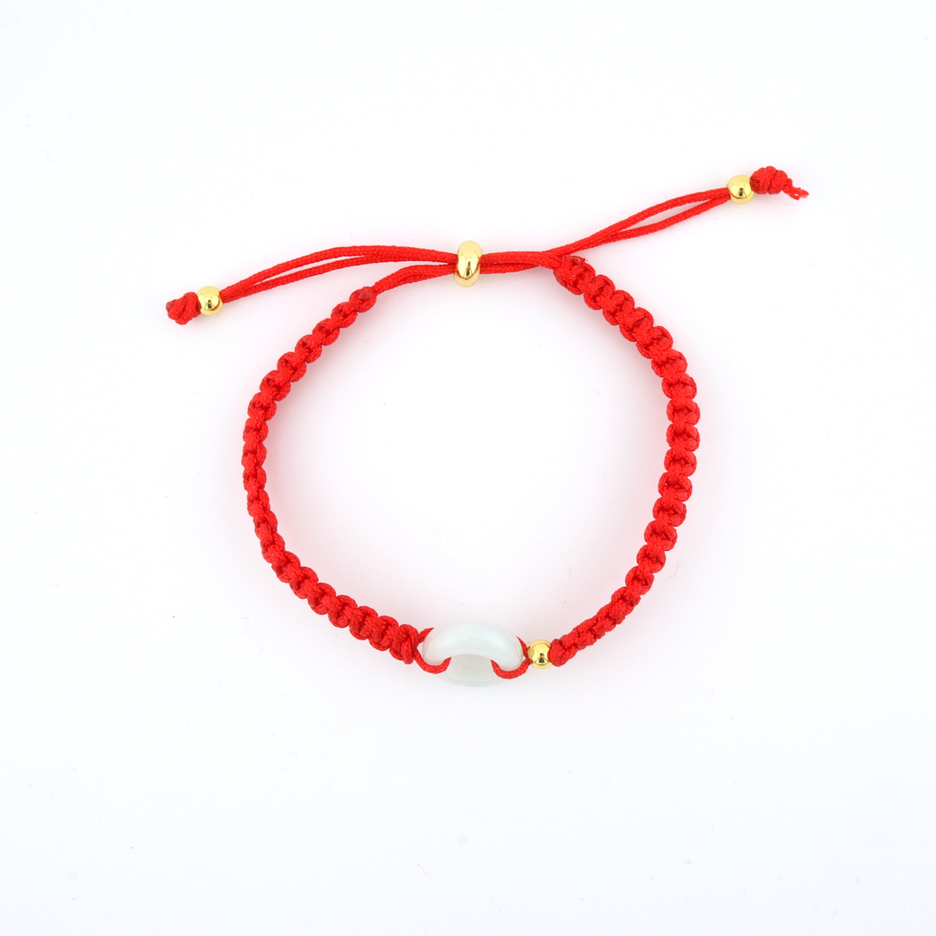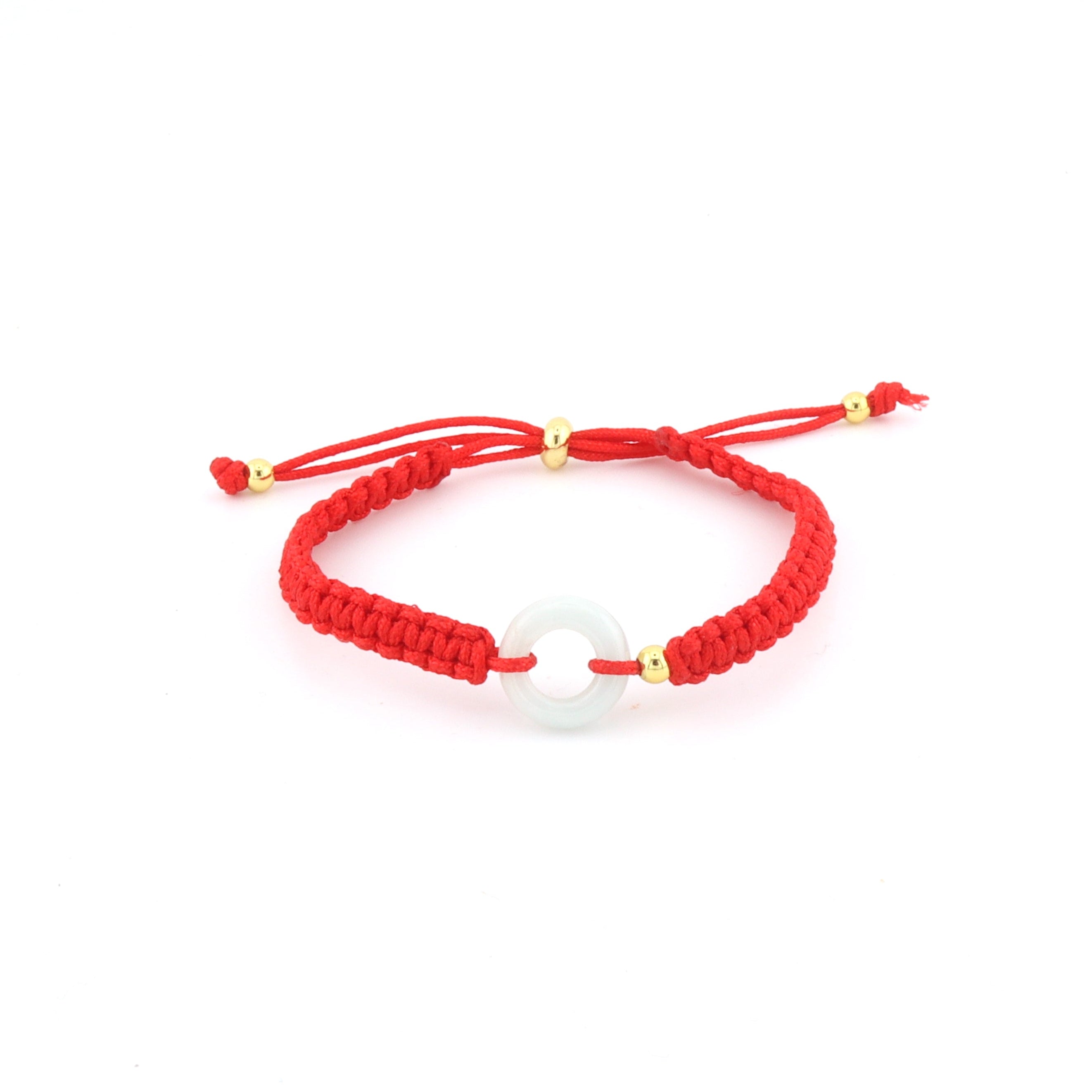The Jade Donut Bracelet, crafted with vibrant red string, features the iconic Ping An Kou (平安扣), a symbol of peace, protection, and prosperity. The jade donut, inspired by ancient copper coins, represents harmony and wholeness, while red string enhances its Feng Shui energy, symbolizing luck, strength, and vitality.