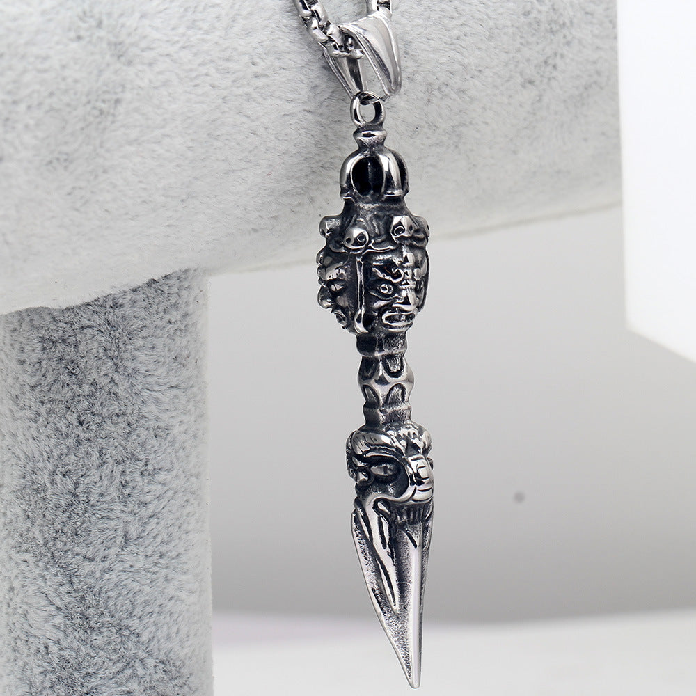 Phurba Dagger Necklace: This traditional Tibetan Buddhist tool transforms into a striking necklace, embodying the power to overcome negativity and obstacles. The multi-sided blade of the phurba represents the three poisons of ignorance, attachment, and aversion, offering a constant reminder to stay centered and resilient. As a talisman and accessory, it channels your focus and shields you from negative influences.